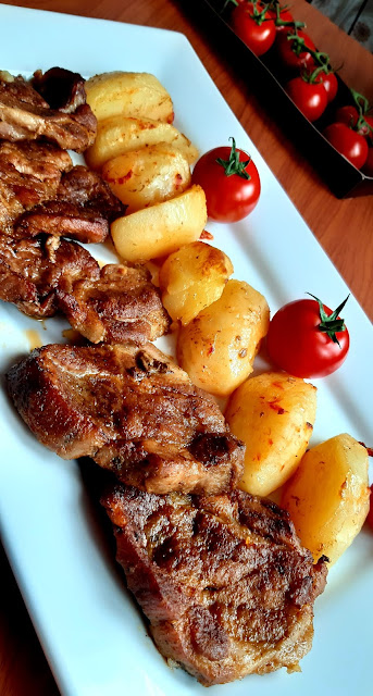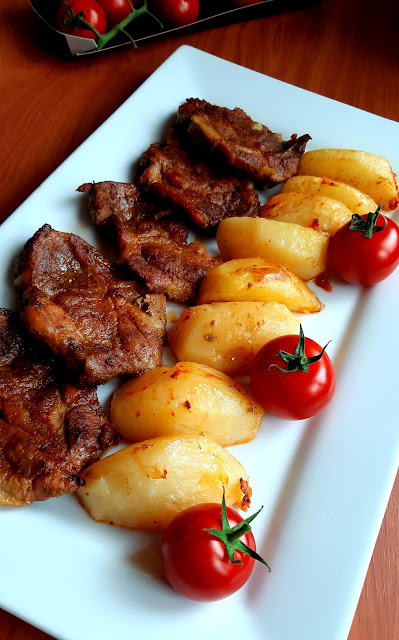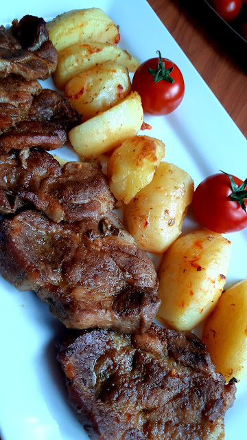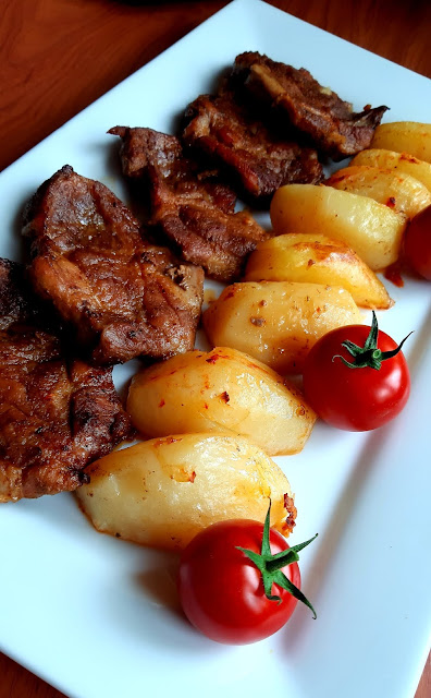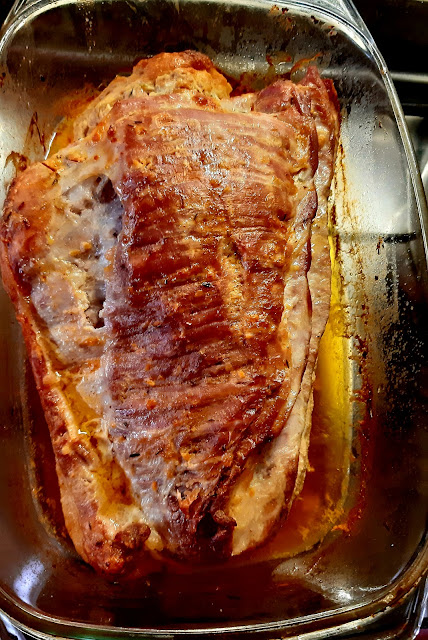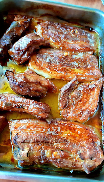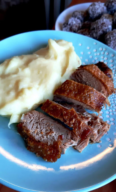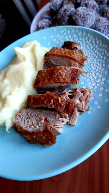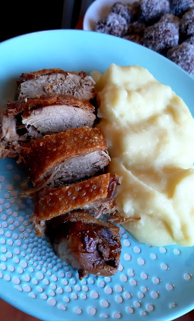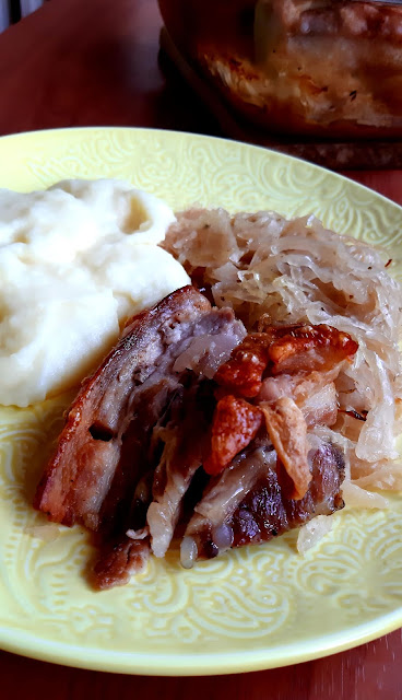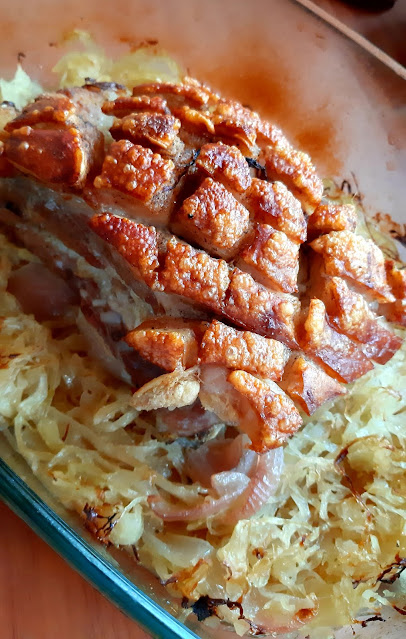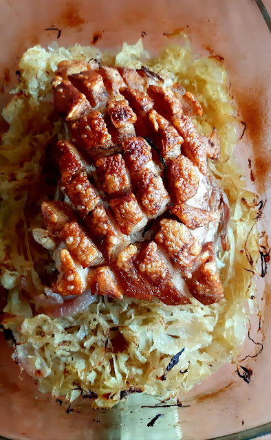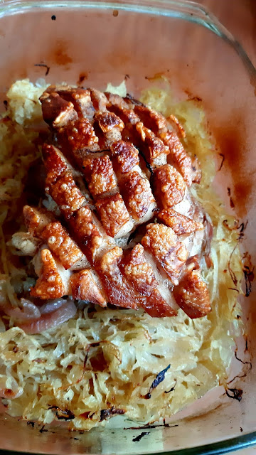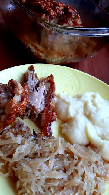 Egy gyönyörű nagy csülköt sikerült vennem most akciósan, így ez lett most az ebédünk. A bőrős felét ropogósra sütöttem, a csülök másik feléből juhtúrós tészta készült. Hozom majd annak a receptjét is.