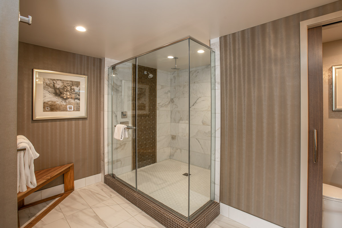 King Bed configuration along with a lounge area and an oversized shower—giving you the experience you deserve in a 600 SQ FT suite!