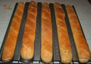Elkészült, sikerült, s olyan lett, amilyet elképzeltem. Pár éve -miután nagyon szeretjük- mindig a LIDL-ben szoktunk vásárolni zöldfüszeres, vagy fokhagymás töltött bagetteket, de azt hiszem ezen túl ez már kiamarad a bevásárló kosárból