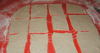 Egy tűzálló tálat margarinnal kikenni, és olvasztott margarinba mártott kanállal beleszaggatni a tésztát.