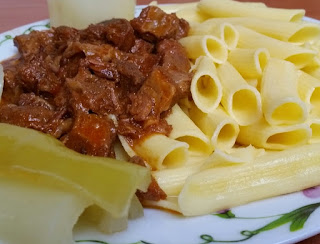 A pörkölt és a két különböző köret 50 percen belül tálalva az asztalra kerül és már fogyaszthatjuk is.