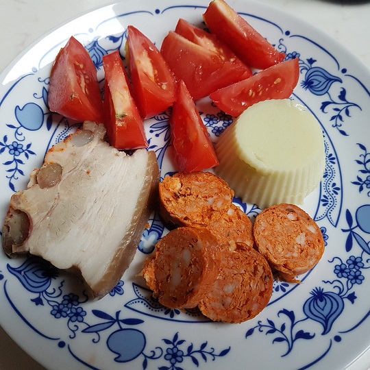 Köretnek Ellában főztem rizst, amihez pár szem zöldborsót, s a nyáron eltett kockára vágott zöldségfélét (sárga és fehér répa) adtam, sóztam és rizs programon megfőztem.
