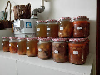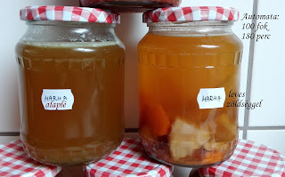 Természetesen a megfőzött ételeket nem egyszerre fogyasztjuk el, ezért üvegbe rakva hőkezeléssel tartósítva felkerültek a kamra polcára.