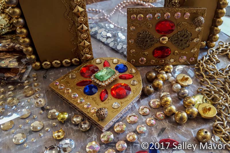 This post focuses on glittery stage sets and props that we used in a variety of scenes. There’s nothing like a shiny object to get one’s attention. That and sugary sweet stuff, which I recently showed in this post.