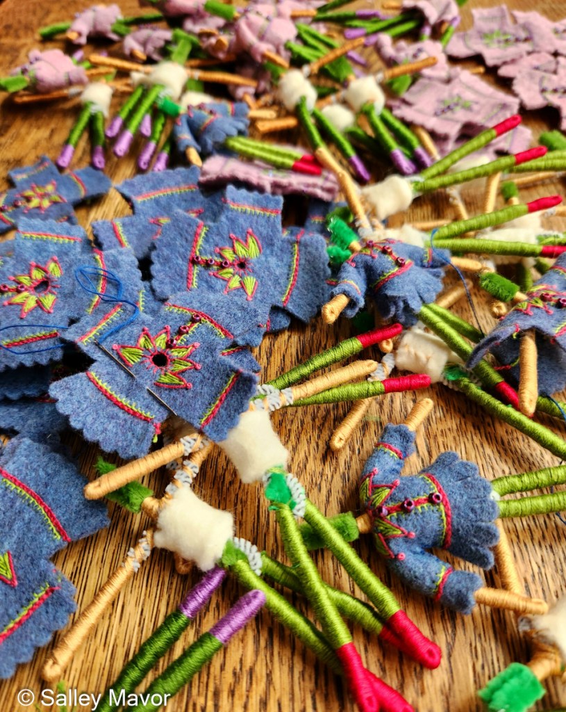 Both sets of 24 dolls are dressed, coiffed and winged and will be ready to fly off to their new homes on Saturday, Nov. 23, 2024 at 10 AM (Eastern US time). They will be sold for $100 each through my Etsy Shop on a first come, first served basis, so please act quickly if you really want one! Sorry, no pre-orders ahead of time. I realize that 10 AM on Cape Cod is in the middle of the night for those of you on the other side of the world, but I can’t figure out how to make it perfectly fair for everyone.