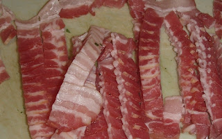 Für den Salat wurde in der Bratpfanne den Pancetta knusperig gebraten, bei uns war es Speck.