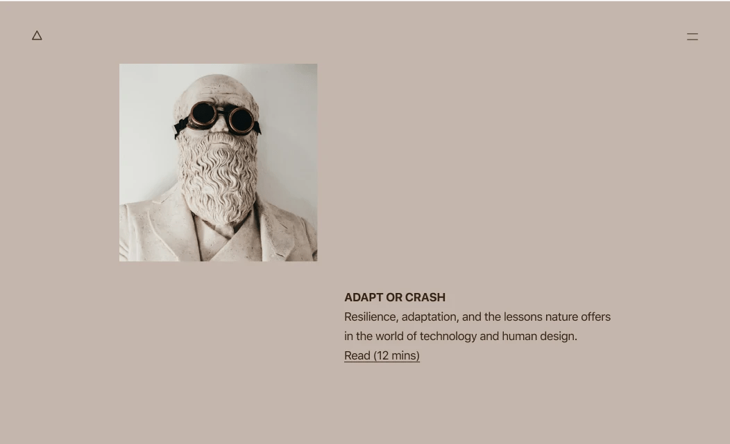 Crea un blog moderno y de estilo editorial con un tema sofisticado y oscuro, una elegante tipografía serif y un diseño limpio que haga que mis comentarios y ensayos den una impresión pulida y seria.