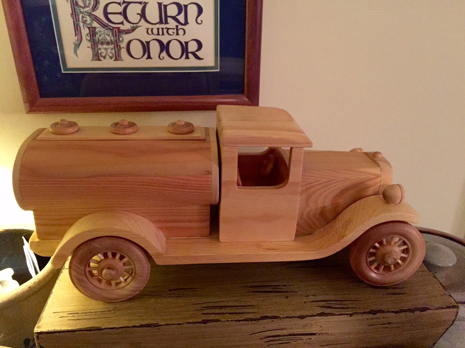 | And, our friend Richard,is a woodworker, and brought us this wonderful wooden truck. It is intricate, and beautiful. |