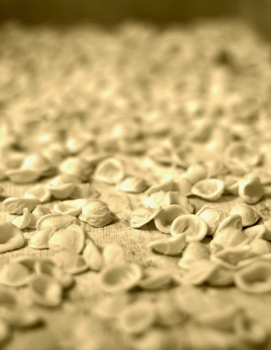 Dopo molte fatiche (che sono quelle di assaggiare), siamo entrate sfacciatamente in casa di una adorabile signora di Bitonto, la suocera della nostra Chiara, e l'abbiamo osservata preparare delle favolose orecchiette, con religioso silenzio (solo il rumore degli scatti era percepibile! )