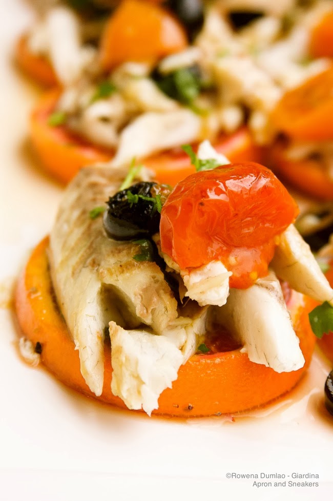 Oven-Roasted Sea Bass With Oranges, Tomatoes & Olives