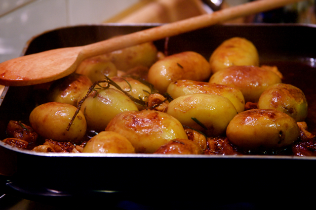 potatoes were a lovely shade of dark amber brown, caramelized by the
