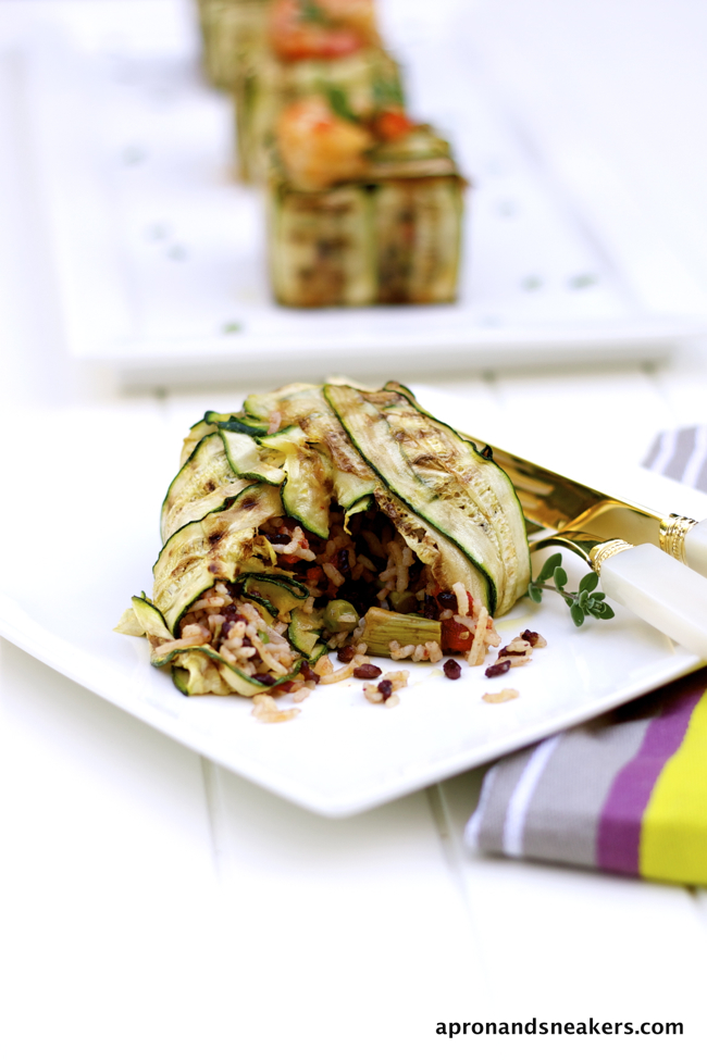I started this recipe thinking of just a regular plate of mixed rice that I was not going to blog about so I didn't think about measuring anything. After tasting the rice and wrapping them up in grilled zucchini, I thought that it's a good recipe to share. Slight changes on the amount of the ingredients shouldn't alter the taste so I hope I gauged the right measurements and I hope you enjoy this recipe.