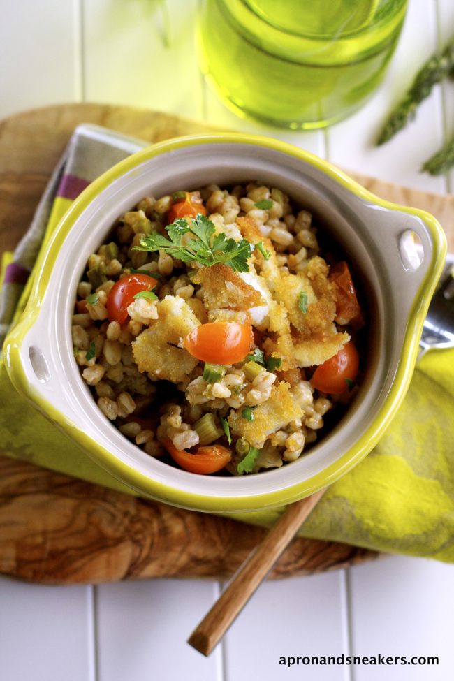 Don't shy away from the term farrotto. It's just like risotto that replaces the rice with farro (emmer wheat) and follows the cooking path of risotto. The same thing goes with orzotto which I have a recipe somewhere in this blog. Here it is.