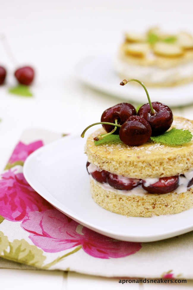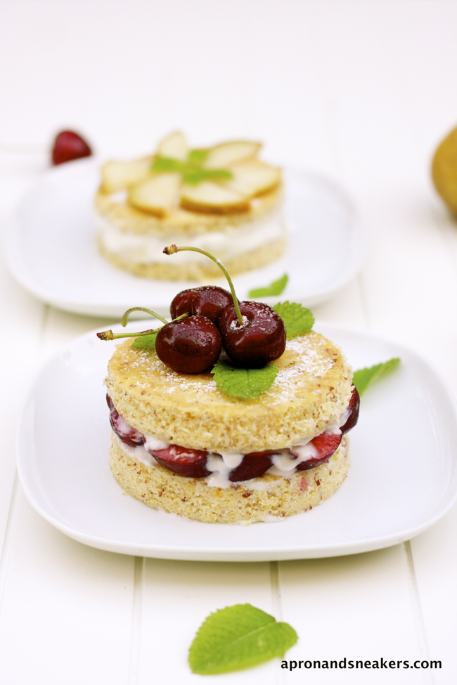 Mini Almond Cakes with Ricotta, Pears & Cherries