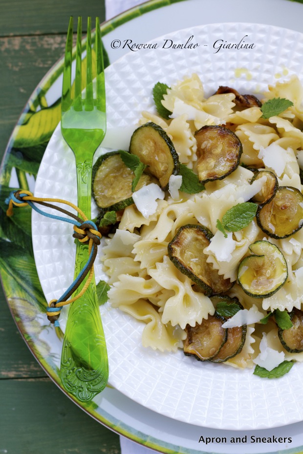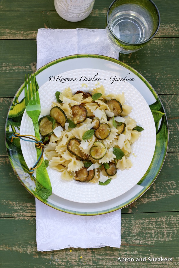 I often prepare pasta with sautèed zucchini, sometimes mixed with smoked pancetta, sometimes with asparagus, sometimes just plain and well, one of my best combinations is with mint. Hot or cold pasta, zucchini and mint are perfect for each other. I usually prefer grilling food more than sautèeing or frying but in this case, take it from me, cooked into golden goodness with a bit of crisp in a saucepan with little extra virgin olive oil gives this pasta perfection.