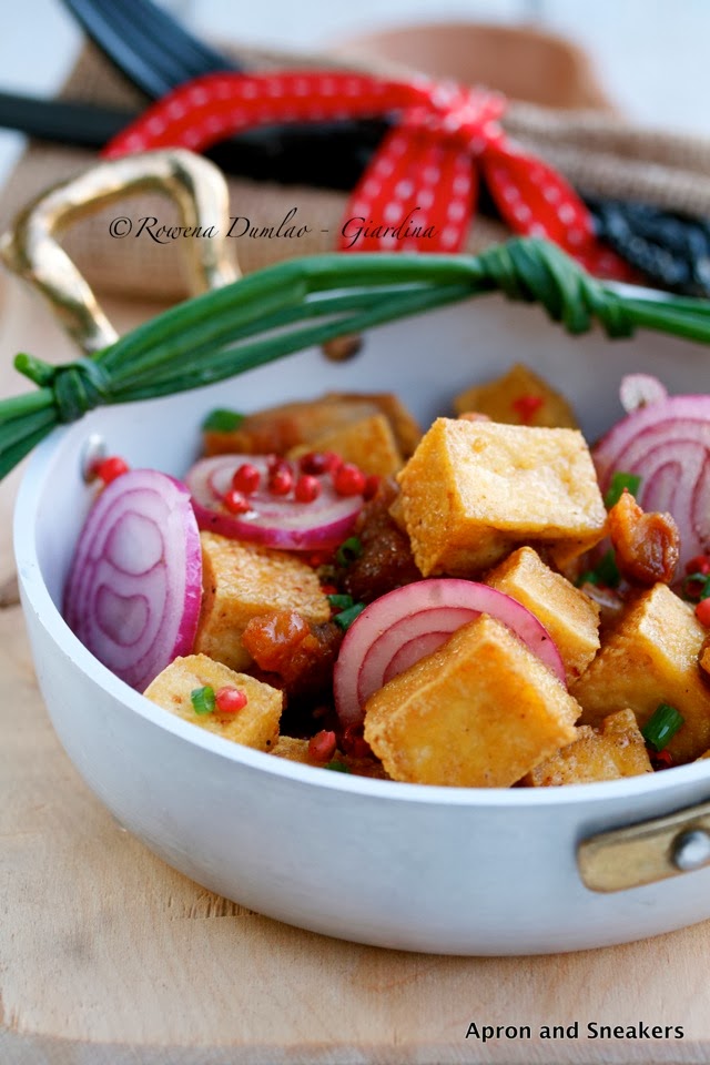 I am still undecided whether I like tofu or not. The texture bothers me when I eat it so when it's fried like this, the external crunchy part takes away that dread of eating something that I am not so crazy about. Being a part of Asian cuisine, it's a familiar ingredient to me. There are actually two ways I can eat it. One, with this dish and another, a peculiar sweet, warm breakfast called taho, eaten in the Philippines that is composed of a softer kind of tofu (the silk kind), vanilla syrup and sago pearls.