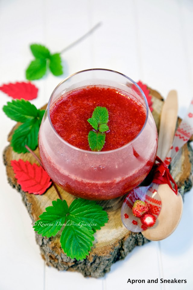 I had been thinking of combining these strawberries with some champagne but the night before I was going to make this drink, my wine class teacher's first line in our wine and food pairings topic for the night caught me off guard. Champagnes don't go with strawberries, remember that! Gulp! I didn't know that! Apparently, not a single one from my class knew that too.