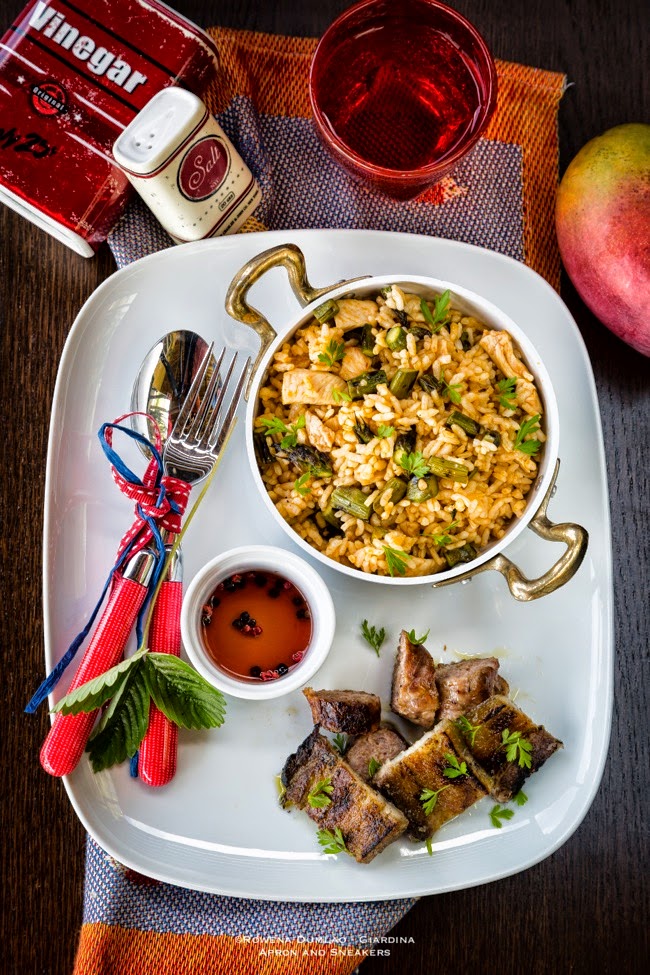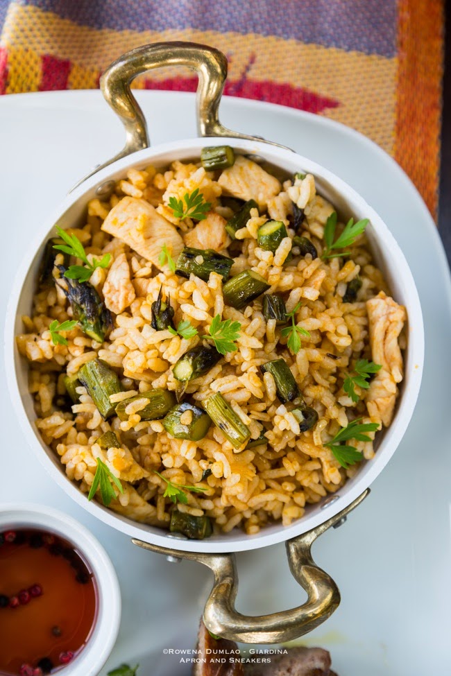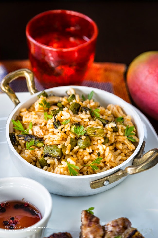Grilled Pork Belly with Chicken, Asparagus & Harissa Fried Rice