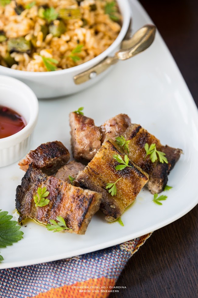 Usually, we would push to go out but my husband offered to grill our lunch instead. Then we decided to go to the restaurant for dinner and leave the kids with the babysitter. That was the best we could do to cover our plans and make everyone happy. So lunch was hastily planned while my husband took a quick trip to the butcher and and grilled. I, on the other hand, gathered some leftovers from the refrigerator to come up with a fried rice dish to accompany the grilled meat. I was in a Philippine grilling mood that day.