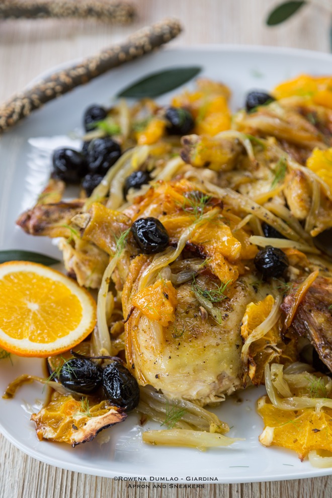 Roasted Whole Chicken with Oranges, Fennel and Olives
