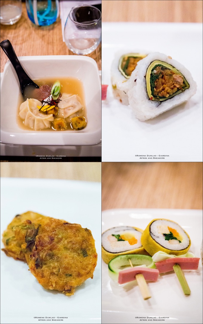 | Top left: ttzok mandu guk Bottom left: kimchi jeon Top & bottom right: kimbap |
