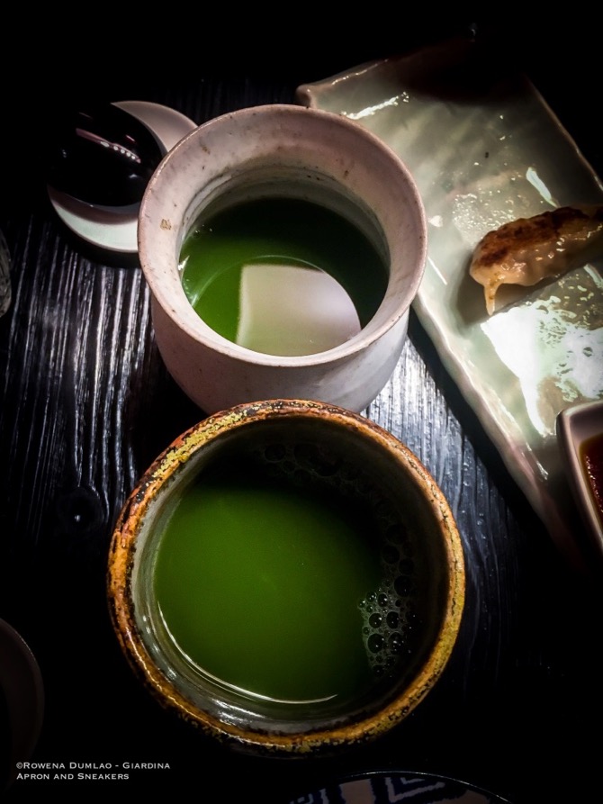 Being a lover of powerful flavors, the gyu tail (oxtail broth) ramen was the perfect choice for me while the mamaya (chicken broth) ramen has a lighter tang but still well pronounced. I am thinking that the miso vegetariano (vegetable broth with miso) yields distinct flavors too. Treated like sandwiches in Japan that you can actually eat even in picnics, the shake onigiri is an interesting alternative to munch on - only the bread is replaced by compact rice. Gyoza may be in all Japanese menus and I think I might have even tried them in all the Japanese restaurants I've been to but MaMa-Ya's version warranted a second order because, yes, it was very good. With warm Japanese food, I best enjoy accompanying it with hot tea because its neutral taste allows me to savour all the rich tastes of the dish and it clears my mouth with every sip.