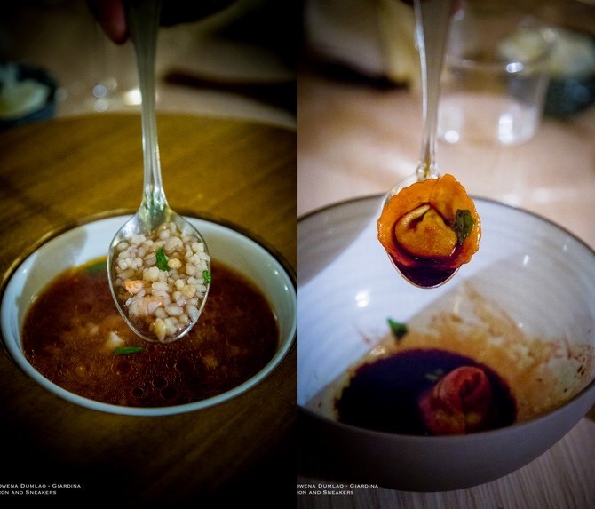 The two chefs opened their own restaurant in 2015 in the premises of Alessandra's family's hotel, Hotel Villa Trieste and called it Aga which means water in the local dialect. Located inside the annex of the hotel, you can find the small restaurant with five round tables that can accommodate between 4 to 6 each. When asked if they have any future projects of expansion, the answer an immediate no. They both want the place to remain as is so they can focus more on the quality of the dishes that they are preparing for their guests. Dinner at Aga is indeed like a convivial and intimate dinner among friends wherein both chefs take the dishes to your table and present them personally with the help of their staff.