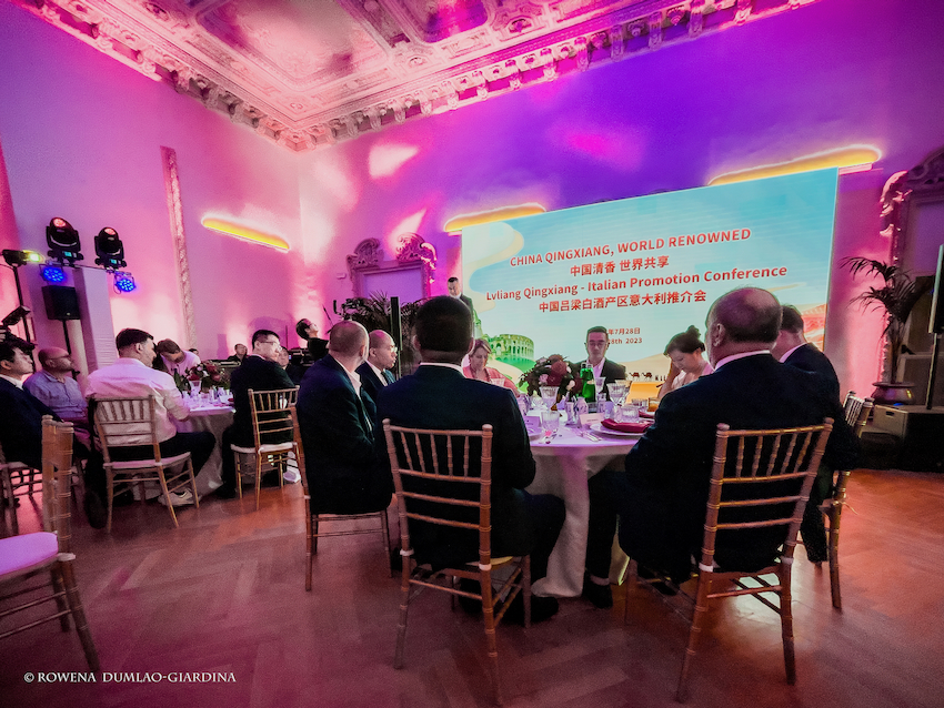 The conference in Rome, "China Qingxiang, World Renowned", was promoted by the municipal government of the city of Luliang and organized by CADA (China Alcoholic Drink Association) with a Chinese delegation of baijiu producers and authorities such Zhang Guangyong, the Mayor of Luliang; Li Bingfeng from the municipality of Luliang; Liu Zhenguo of CADA and Hai Zhenming, also from CADA.