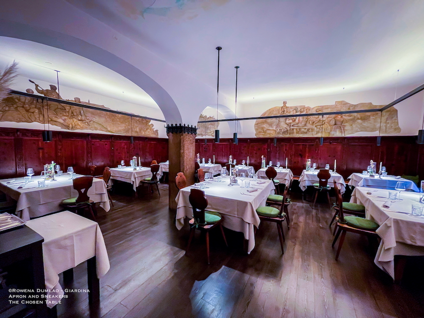 Löwengrube which means (literally “lion’s den”) immerses you in over 500 years of history at the heart of Bolzano, framed by the towering Dolomites. Established in 1543, the restaurant stands as one of the city’s oldest culinary landmarks, its walls echoing with stories of generations past. Step inside, and centuries-old details surround you: neo-Gothic Tyrolean stube with carved wooden panels, faded frescoes whispering of Renaissance artistry, stone staircases worn smooth by time, and majolica stoves that once warmed nobles and merchants.