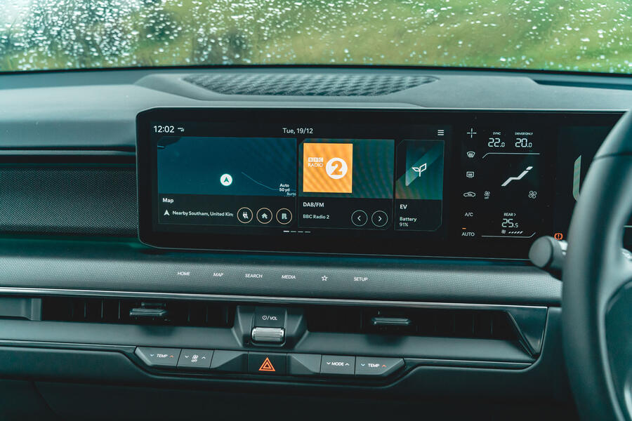 The EV9 comes with twin 12.3in infotainment and instrument displays. There are two wired smartphone connections in the front row and four more USB-C charging ports in the rear. Go for a GT-Line S car and you get a driver’s head-up display as well, with customisable content.