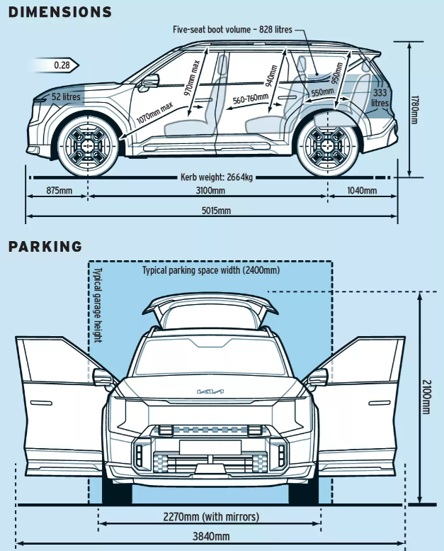 In the EV9 Air with seven seats, accommodation is excellent and the boot is big enough for a reasonable amount of shopping cargo. In five-seat mode, the loading space under that cover is a little shallow (blame those third-row seats and a motor on the rear axle) but it’s otherwise very generous.