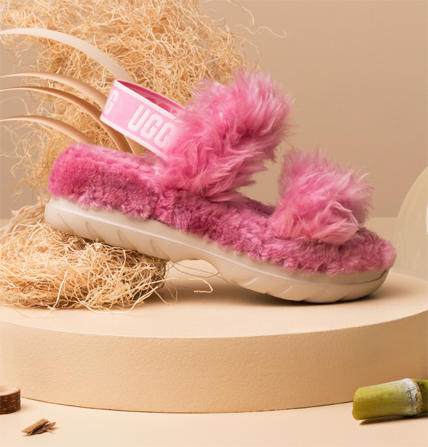 As novas sandálias UGG foram criadas a pensar na sustentabilidade do meio ambiente. Os materiais usados são o pelo feito a partir de Tencel e a sola a partir de cana-de-açúcar reciclada. Não sabia mas, diz que a cana-de-açúcar é um recurso que depende unicamente da água da chuva e que elimina o CO2 da atmosfera, não necessitando de rega.
