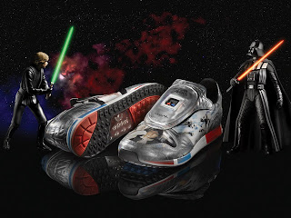Realmente el video me llama la atención, imagino que es el objetivo del video, pero no acabo de entenderlo, no se si son zapatillas, pantalones, pelotas… O todo a la vez. Así que manos a la obra. He estado investigando por Google. Y he averiguado en qué consiste el “Star Wars Collection” os he puesto alguna de las fotos más abajo y mi conclusión es que como buen Jedi ya tengo un R2D2 y un sable laser y ahora…
