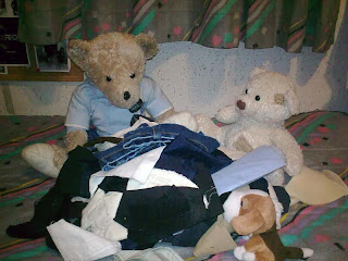 Alá. Son retales de ropa. La verdad, vosotros quizá no lo entendáis, pero para un peluche encontrar retales de ropa, trapos, almohadas,…. Bueno abrevio que la lista es larga, lo que quería decir es que para los peluches estas cosas es un gran entretenimiento.