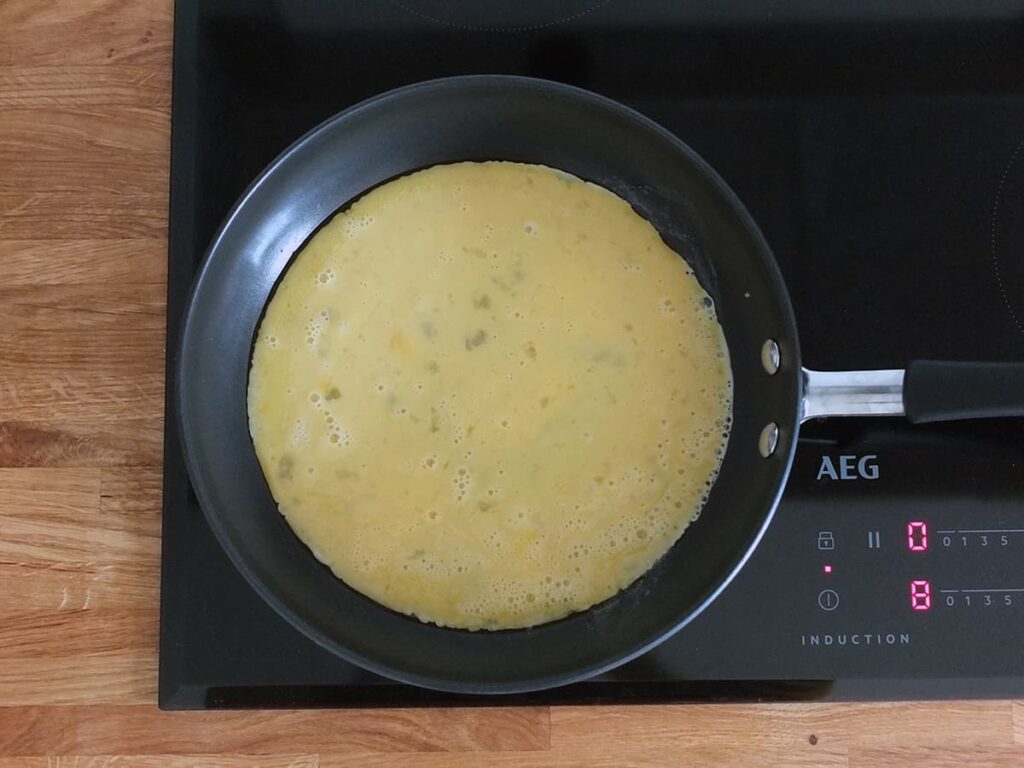 - Whisk your eggs with a fork.