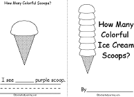 How Many Colorful Scoops? Book A counting and colors book for early readers with numbers (from 1 to 11) to fill in, ice cream scoops to color, and sentences to copy. |