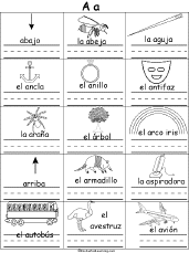 Spanish Picture Alphabet Activity For each letter, write a word in Spanish that starts with that letter, and draw a picture of it. Go to a slightly larger version |