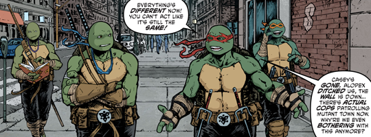 - Basically, following The Armageddon Game, the Turtles are having long conversations/arguments about what their purpose is now, what to do with their lives, blah blah blah.