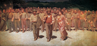 È un’opera maestosa di quasi tre metri per sei alla quale l’artista lavorò per oltre trent’anni terminandola nel 1901, molti anni prima del Futurismo e delle lotte sociali che videro contrapposti i padroni dell’epoca ai braccianti prima e agli operai poi.