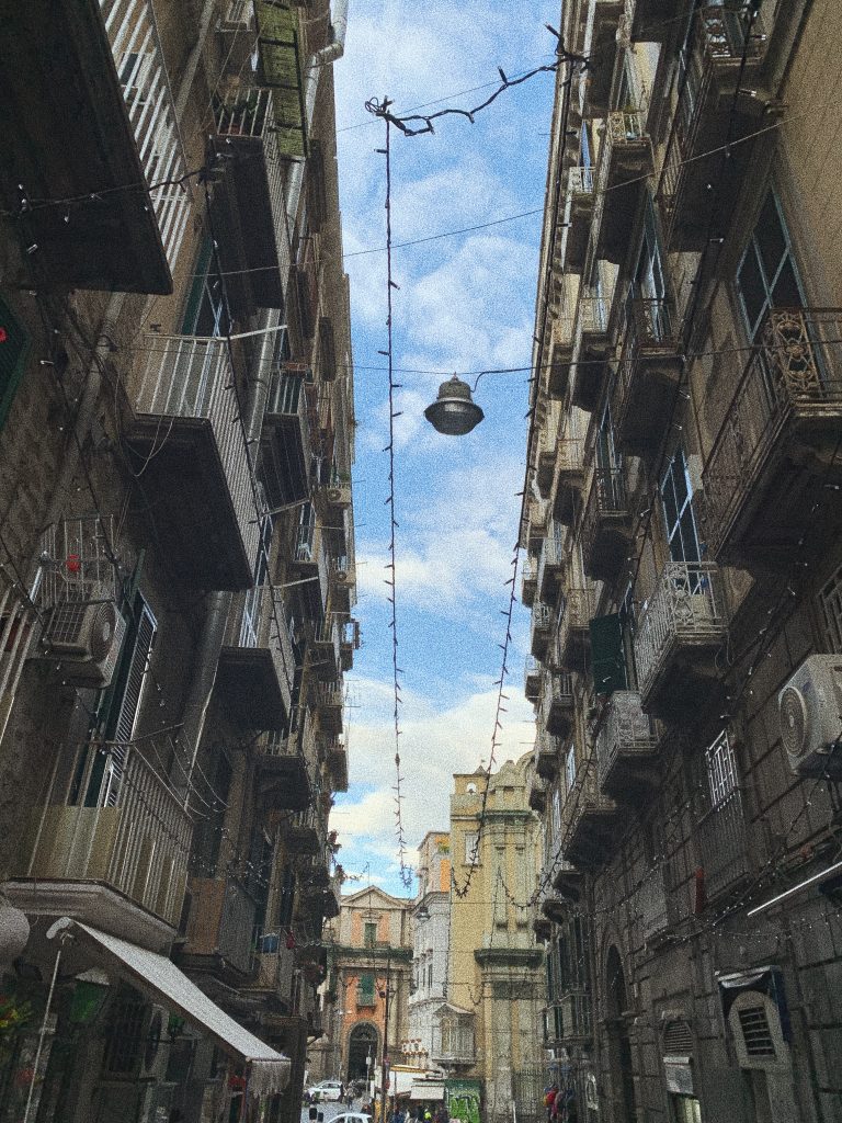 Пътувахме от Флоренция към Неапол с кола…. Доста се чудихме къде да отседнем и накрая решихме все пак да изберем по-централно място, което обаче да има паркинг. Другата ни опция беше почти извън града, но не знаехме как ще пътуваме. Избрахме хостел (в който имахме самостоятелна стая) и който имаше паркинг. Трудното обаче беше НАМИРАНЕТО му. Джи-Пи-Ес-ът ни твърдеше, че сме пристигнали, но ние не откривахме мястото…Прочетохме, че официалният вход е по стълби, в близост до една църква. Това ни принуди да караме около 3-4км по единствената главна улица наоколо, докато успеем да обърнем. Този първи час в Неапол беше меко казано лудница. Бях чела, че там карат лошо, но това не го очаквахме. Хиляди коли, движещите се без да им пука, постоянно свирещи, изпреварващи те едновременно от ляво и от дясно + мотористи, които просто си карат между колите и често изправарват, влизайки в насрещното, тъй като улиците са твърде тесни. Няколкото пъти, когато мотор влезе в нашата лента, почти се наложи да спрем. Представете си и павета по улиците… всичко създава меко казано безумно напрежение. Както казах на родителите си, ако аз карах, щях да спра, да сляза, да кажа, че повече няма и сантиметър да карам…и за по-сигурно да се разплача 😀 В крайна сметка след няколко телефонни разговора, спиране на платен паркинг и т.н., успяхме да разберем как се влиза в хостела, а именно през гаражна врата, няколко номера по-нагоре, която някой трябвало да ни отключи… И след като на последните секунди преди да влезем в паркинга, почти участвахме в катастрофа с моторист, официално казахме, че няма да мърдаме колата докато не си тръгнем от Неапол.