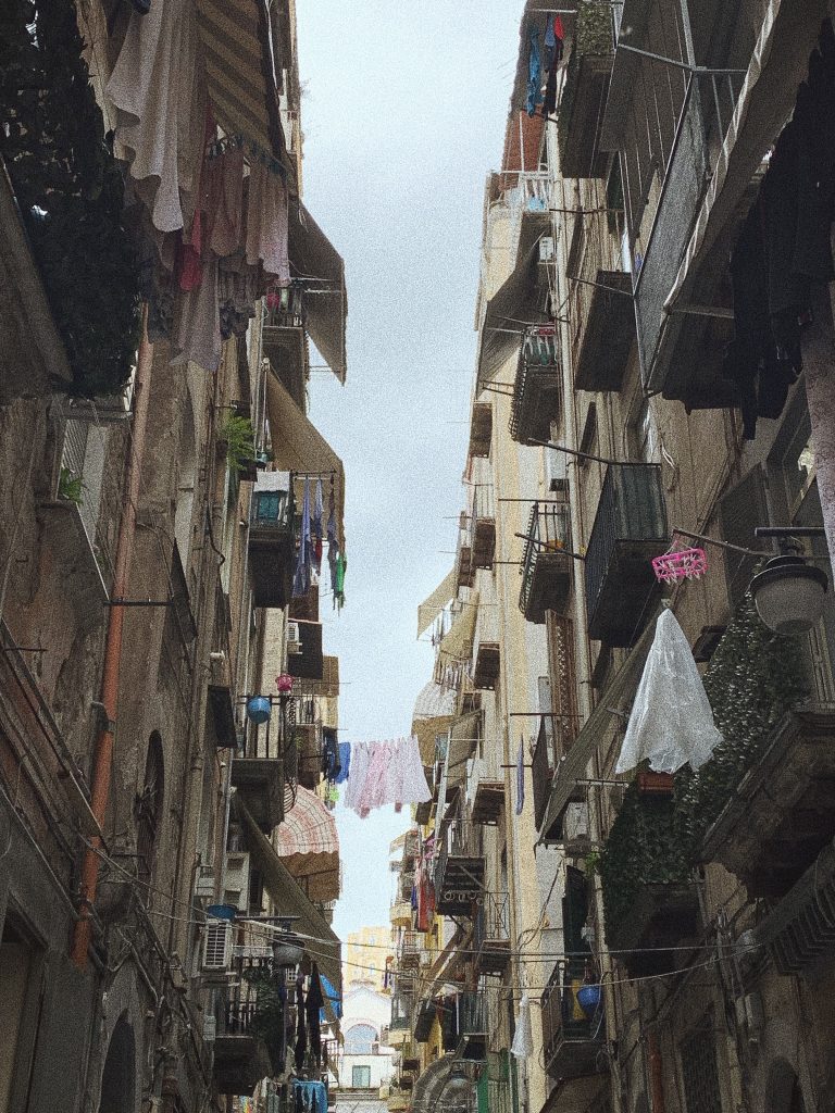 Друго шантаво нещо в града е, че всичко е толкова тясно, че хората простират на сушилници по улицата и за по-сигурно, ги завиват с найлони, за да не се пращат от колите. Буквално вървиш по улицата и заобикаляш чуждото пране. Разбира се, често виси и от терасите. Много от апартаментите имат за вход висока, вита стълбичка, по която едвам се минава. С две думи – безумно тясно е.
