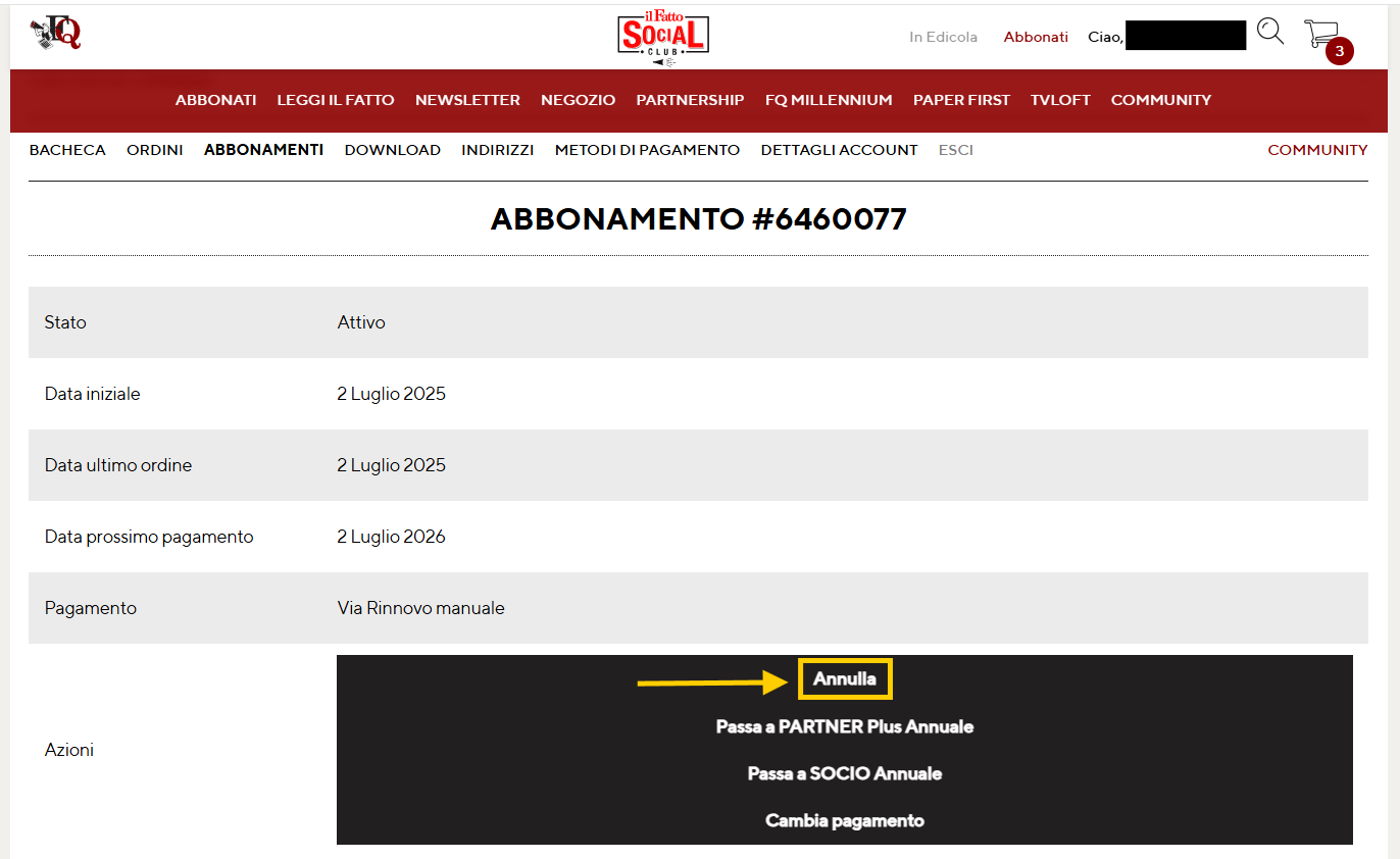 Per annullare il rinnovo automatico del proprio abbonamento ti invitiamo a seguire questi passaggi