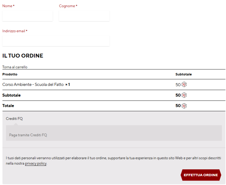 - Completare l’acquisto cliccando su “Effettua ordine”