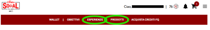 - A questo punto, basterà visitare la sezione “Esperienze” o la sezione “Prodotti”.