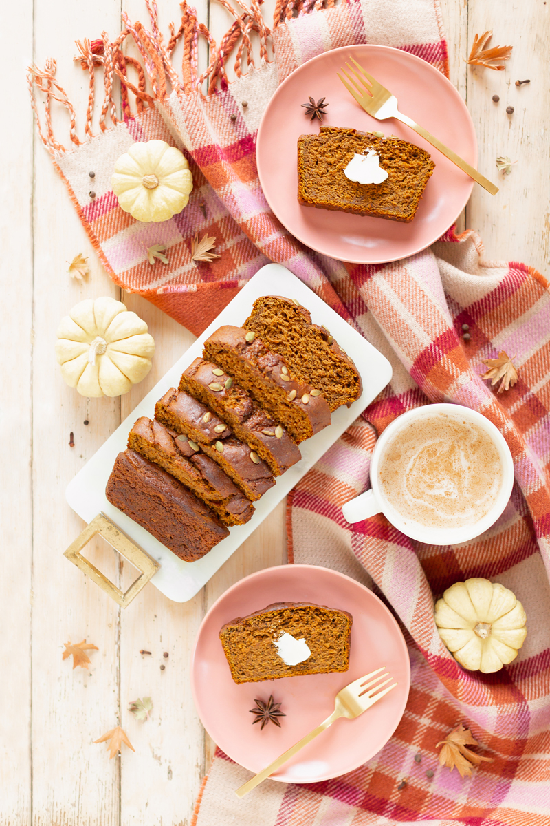 Foodie friends, who’s up for some healthier, pre-holiday baking? I’m thrilled to finally share my Gluten Free Mapled Pumpkin Chai Bread with you today after just over a year of recipe development! I’ve mentioned previously that due to my extensive recipe testing and development process and focus on seasonal ingredients, oftentimes recipes take over a year to make it to JustineCelina. As with any piece of content I share on this pages, quality is my top priority! Over the course of the five times (yes, really!) I’ve baked, tweaked and meticulously tested this delicious seasonal loaf, it’s become one of our all-time-favourite recipes — and I hope you enjoy it just as much as I’ve enjoyed creating it for you. I’ve also included a handful of my favourite local grocers and vendors where I picked up all of the ingredients I’ve used in this recipe. Now more than ever, local businesses need our support and I’d like to ask you to consider how you can support your local economy (in whatever capacity you’re able to) as we transition into the holiday season.