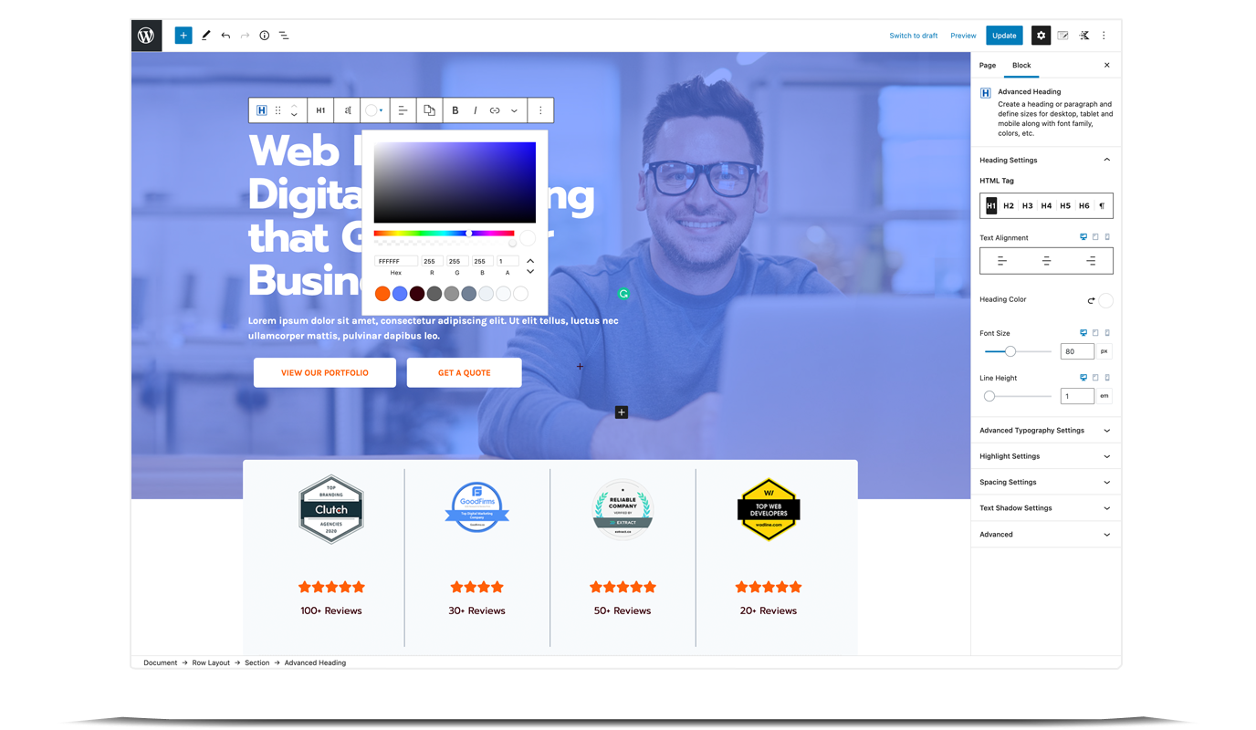 Tweak your design for each screen size. Edit tablet and mobile settings while previewing in the WordPress editor.