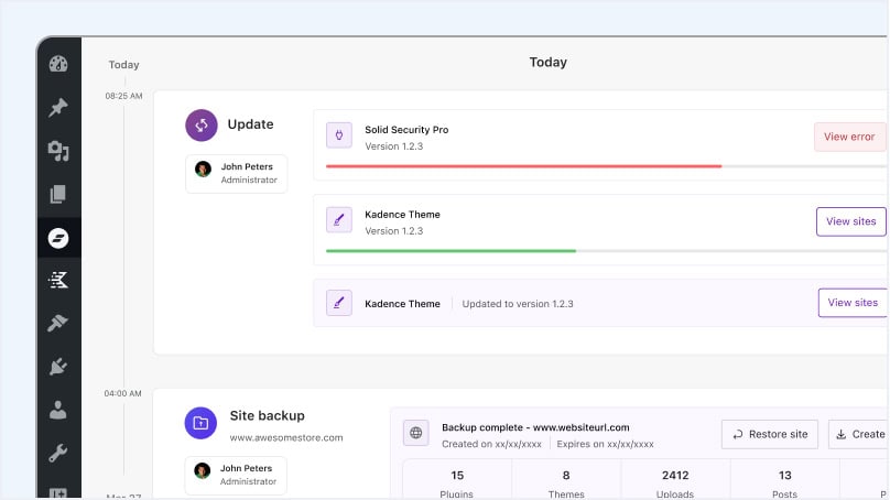 Powered by SolidWP, StellarSites includes real-time malware protection, daily backups with one-click restore, and automatic updates for WordPress core, plugins, and themes, all with visual comparisons so you’re never caught off guard.