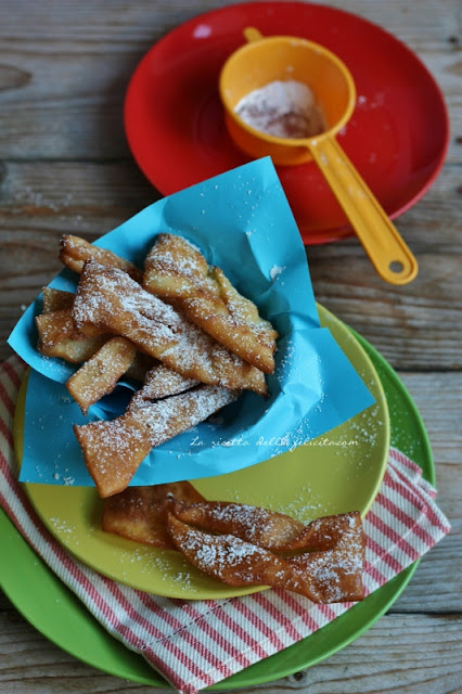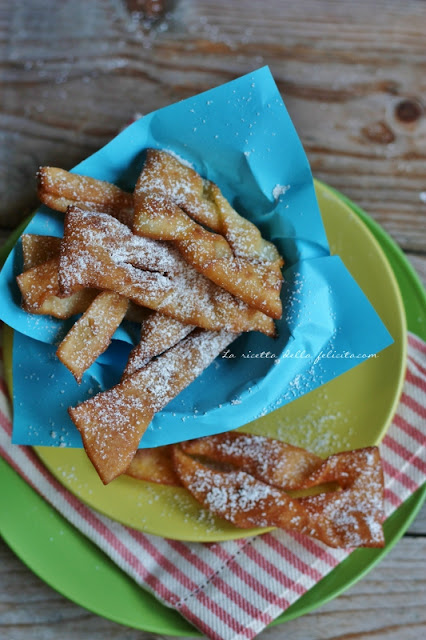 - la frittura deve essere fatta con attenzione perchè la pasta si colora subito e si rischia veramente di bruciare le Chiacchiere....basterà un minuto circa per lato.