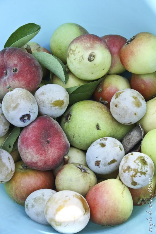 Salvatore ci ha lavorato tutta la vita in quella robba... e Peppino.... e i figli di Peppino... e oggi anche i figli dei figli di Peppino... i miei figli. La storia del nonno Salvatore e della nonna Maria, Peppino la racconta oggi ai suoi nipoti, quando se li porta in campagna a vedere gli alberi e la frutta. Per lui il tempo che dedica a quella rrobba è sempre troppo poco... e si rammarica di non essere riuscito a mantenere tutti gli alberi e le piante che aveva piantato suo padre, nonno Salvatore. Il pero è sempre lì... e Santina, sua moglie e mia suocera, con quelle meravigliose pere dell'albero di nonno Salvatore ci prepara i succhi di frutta senza porcherie... così i bimbi possono bere la frutta vera a merenda o a scuola. Peppino si arrampica ancora in alto in alto e raccoglie le pere e le lancia giù... e i bimbi via a morsi... come allora, come quando erano tutti insieme, come quando era tutto rigoglioso e il sudore rigava il volto di nonno Salvatore sotto il sole di mezzogiorno.un kg di pere, senza buccia e scarti