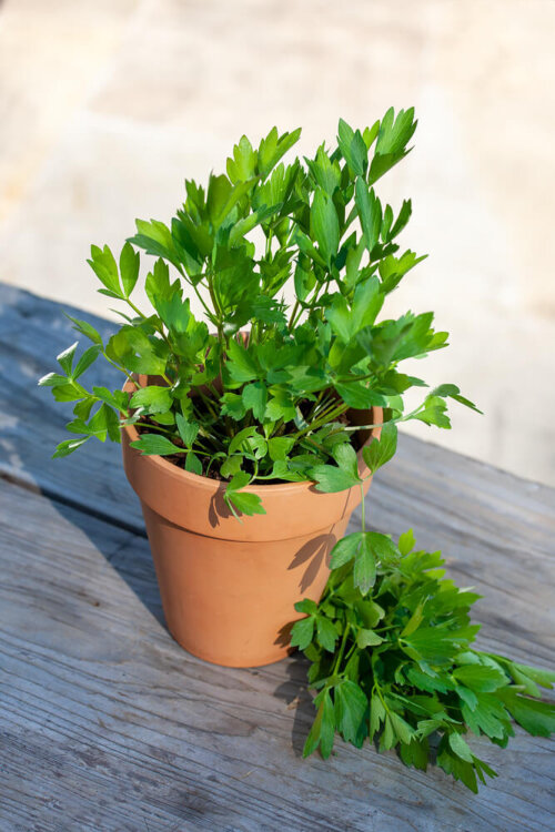 Sow seed directly outdoors in a sunny site with average soil in mid-to-late May or from mid-August through to early September. Seed can also be started indoors in a soil-less mix 6-8 weeks before last frost date – use plantable peat or paper pots, as lovage does not transplant well. Keep temperature at 21° C for the 10-20 day germination period, then grow on at a slightly cooler temperature before hardening off and transplanting outside after the danger of frost has passed. Sow seed 6 mm deep and 7.5 cm apart then thin to 60-90 cm apart in the garden.